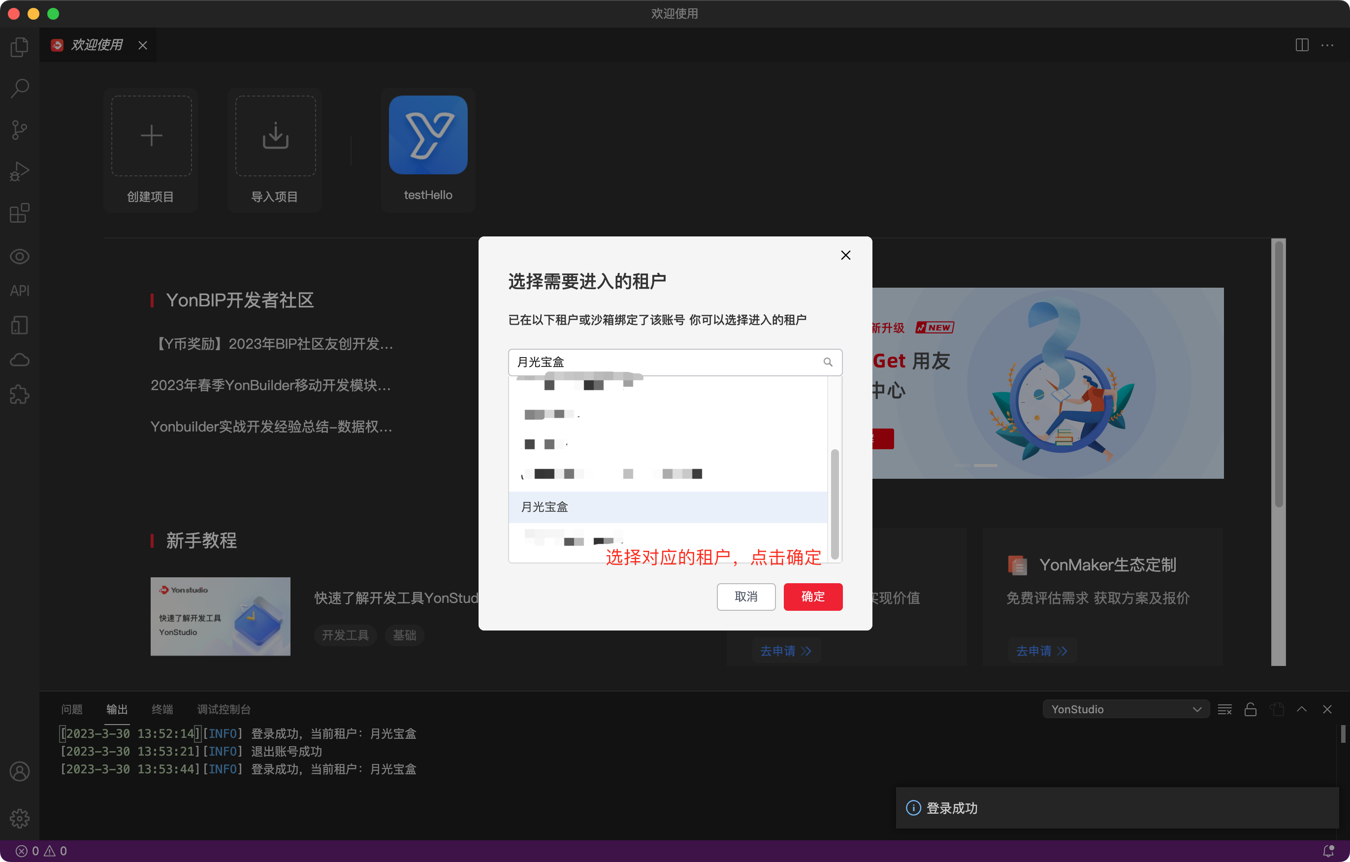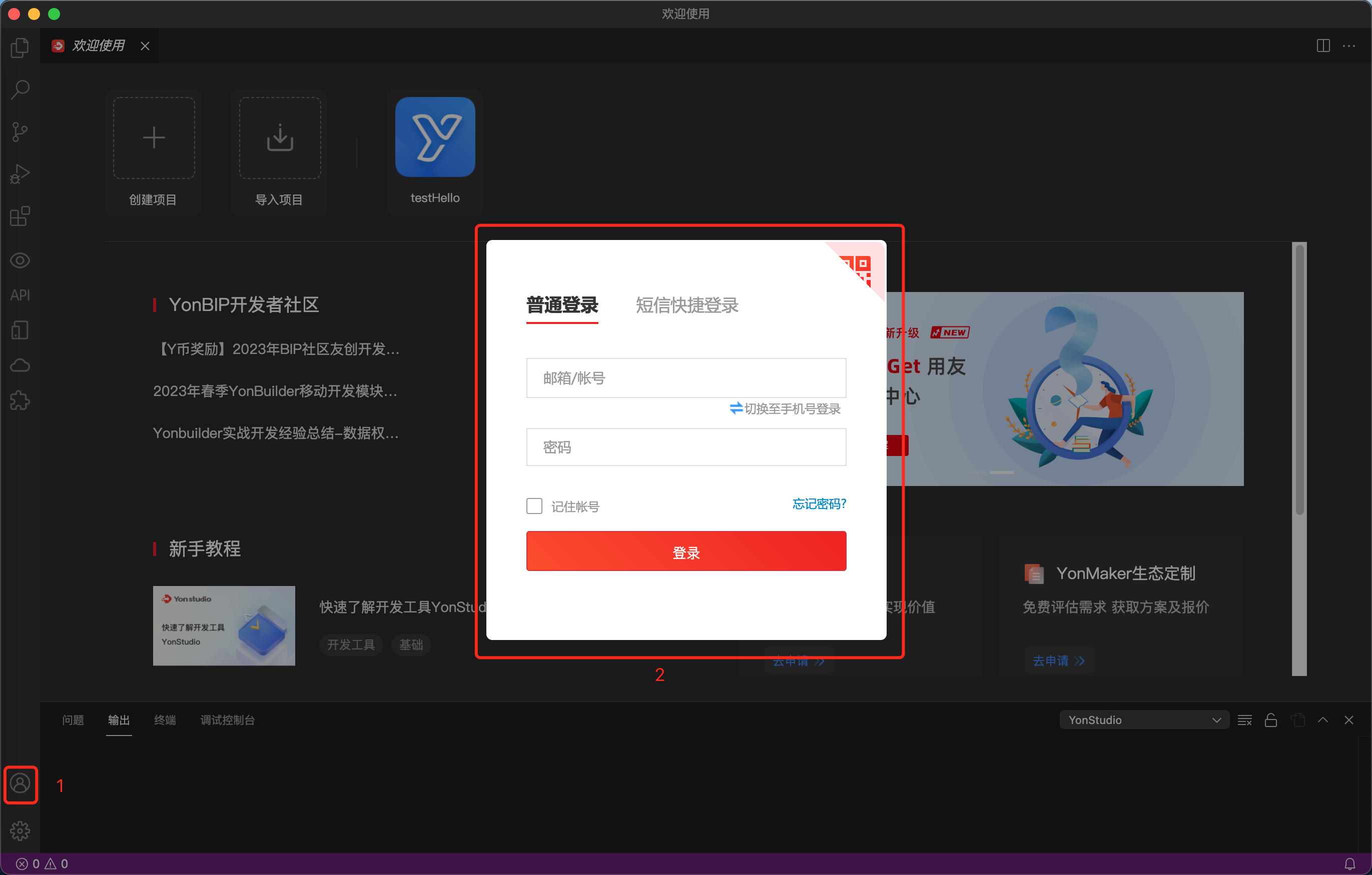 3.1.1 启动 YonStudio,并进行账户登录(没有账户的返回上一步骤先进行账户注册)