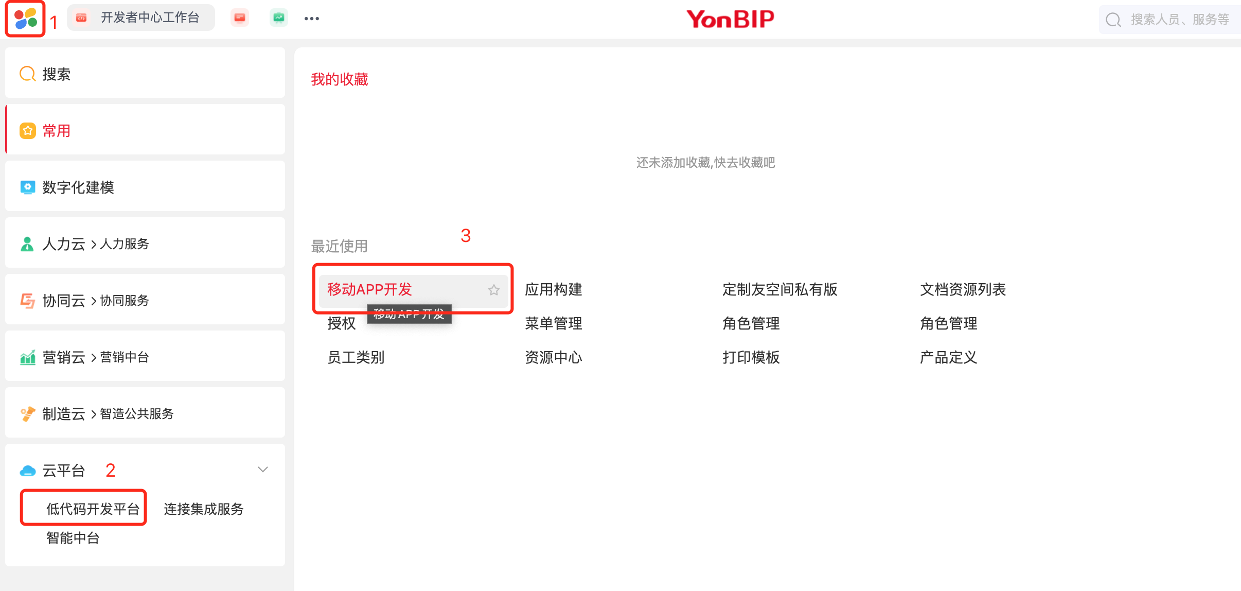 登录 用友开发者中心 工作台 - 云平台 - 低代码开发平台 - 移动App开发