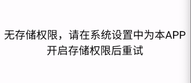 如果是第一次安装,应用内应该会提示「无存储权限。。。」的提示信息