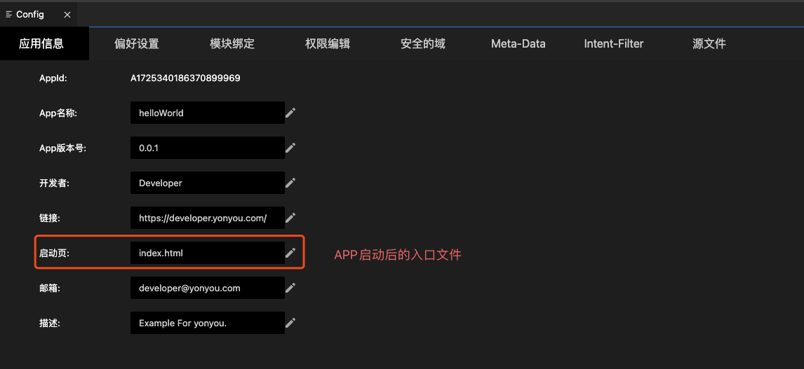 在YonStudio开发工具下,config.xml被可视化了,它的入门文件位置见下截图