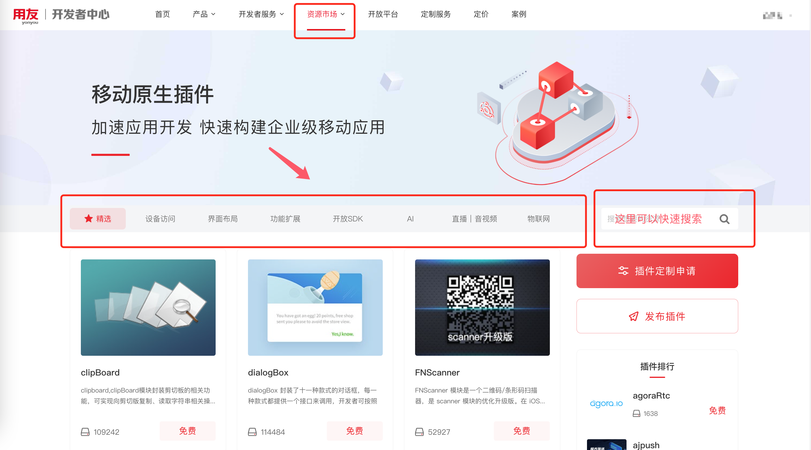 鉴于以上的场景需要,YonBuilder移动开发在引擎层提供了一种机制,就是可以使用引擎提供的一套特定的框架方法,可以将使用android或者iOS原生语言开发的SDK进行封装,封装后的程序可以直接被JavaScript进行调用使用。这个封装好的程序包,就被叫做「移动插件」,或「移动原生插件」。