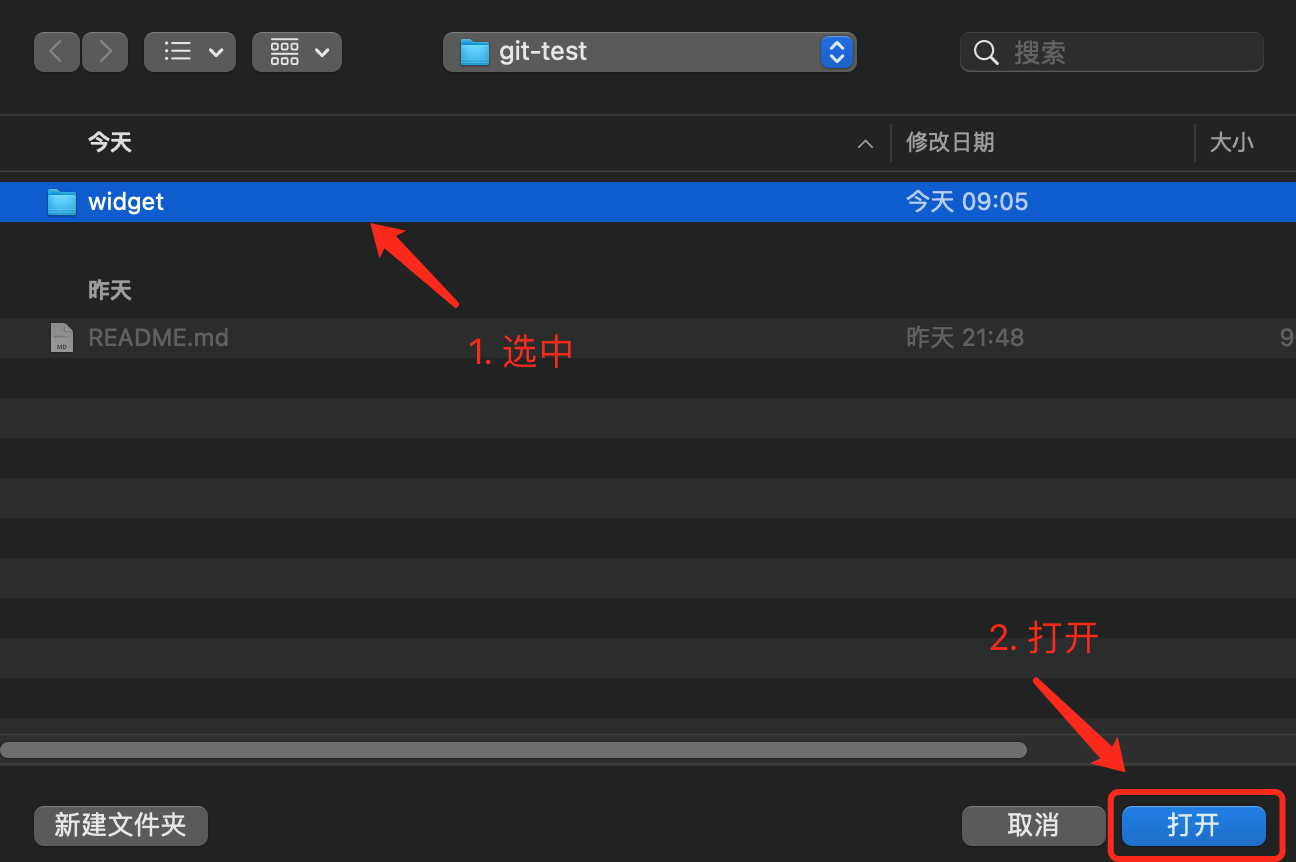 Clone生成的Git文件夹(本文是git-test)内。 -