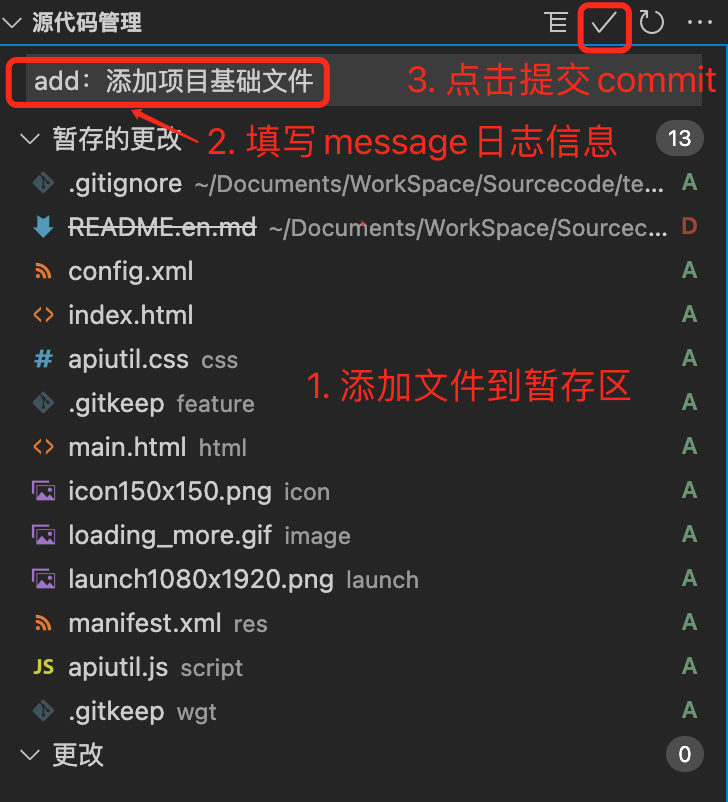 PS: 上面的操作,也可以使用终端通过 Git 命令进行,具体详细的 Git 操作,不是本文的重点,有需要的同学,可以自行查询学习。